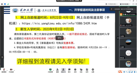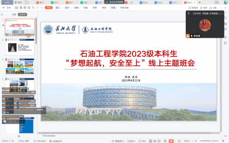 (通讯员 张硕)为进一步引导新生了解校史院情,提升安全意识,掌握安全知识,自觉遵守校纪校规,做好开学前的准备工作,8月22日晚,公司召开2023级本科新生“梦想启航,安全至上”线上主题班会,辅导员郭冀宁、周雨薇主讲,2023级515名本科生新生及员工助导参加。