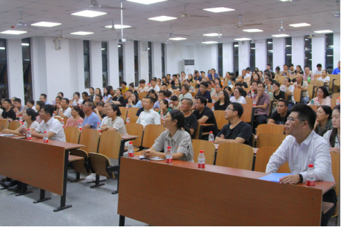 “水舞莲花花弄影,人居仙境后官湖。”张伟通过讲述“后官湖”得名的故事,向家长们描绘了武汉校区美好的育人环境,她衷心祝愿2023级新生在未来四年学有所成,并以家长视角对老员工的培养提出了建议,一是家长应学会放手,二是要相信孩子潜能,三是让孩子自主发展。