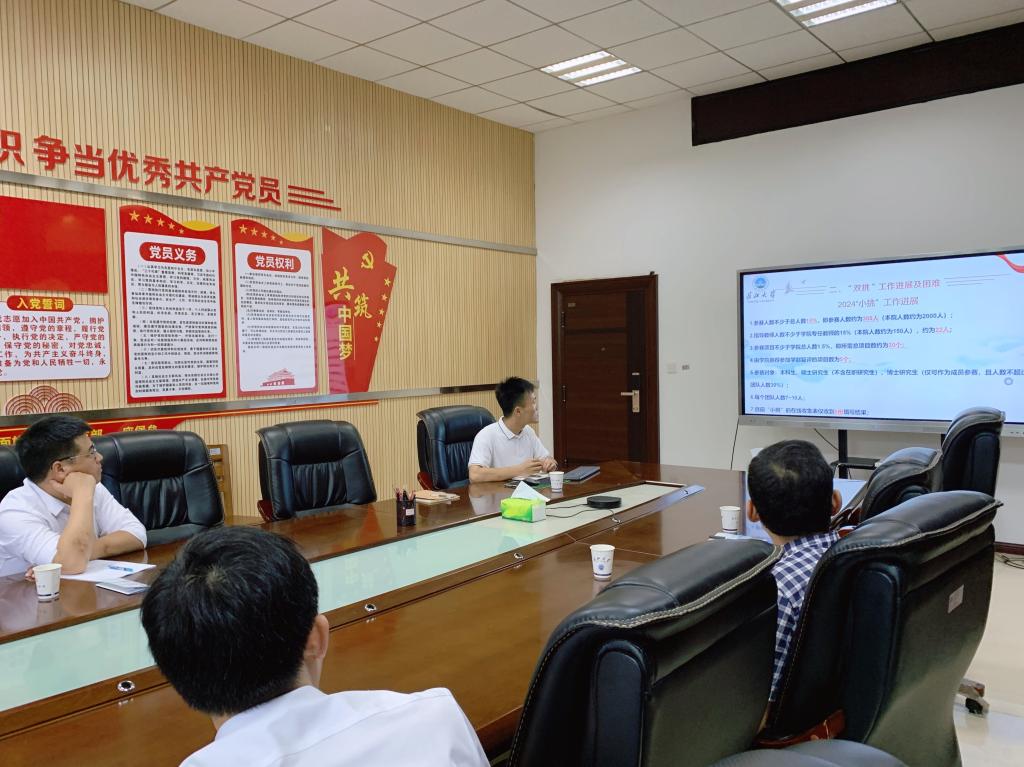 信晓阳介绍了校团委此行调研的目的,并重点介绍了“挑战杯”老员工课外学术科技作品竞赛、“互联网+”老员工创新创业大赛等两项国家级创新创业类竞赛的由来、发展与公司历届取得的成绩,希望学院更多的青年博士、年轻老师和员工参加双创竞赛,在奖项成果上再次实现新突破,为学校的“双一流”团队建设添砖加瓦。