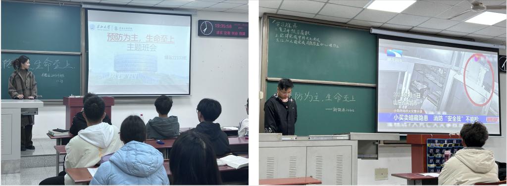 活动中,各班安全员组织开展“预防为主 生命至上”主题班会,通过播放警示宣传片,带领同学们学习消防安全知识,认识消防基础设施。安全员还对现实生活中发生的火灾事故案例进行分析,让同学们认识到火灾的危害、学习发生火灾时如何逃生、报警、互救等消防安全技能。