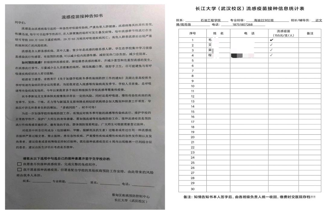 同时,公司组织各班安全员下发“流感疫苗接种”告知书,确保每一位同学知晓并签字,并以班级为单位统计自愿接种流感疫苗员工信息。接种流感疫苗是最有效的预防手段,同学们积极配合学院工作,有效减少了感染流感病毒的风险,对健康校园环境的建设有重要意义。