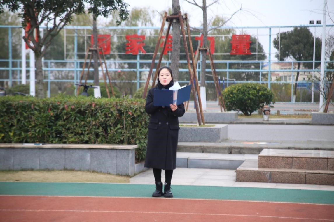 7时整,国旗护卫队准时地出现在众人的眼帘中。他们不顾凛冽的寒风,始终向前踏出他们整齐的步伐。伴随《义勇军进行曲》的悠扬旋律,国旗与东方的红日一同升起,阳光在操场上映出护卫队同学们矫健笔挺的身姿,令人不由得心潮澎湃。在场全体师生齐唱国歌,充分彰显公司师生激昂慷慨的爱国情怀。